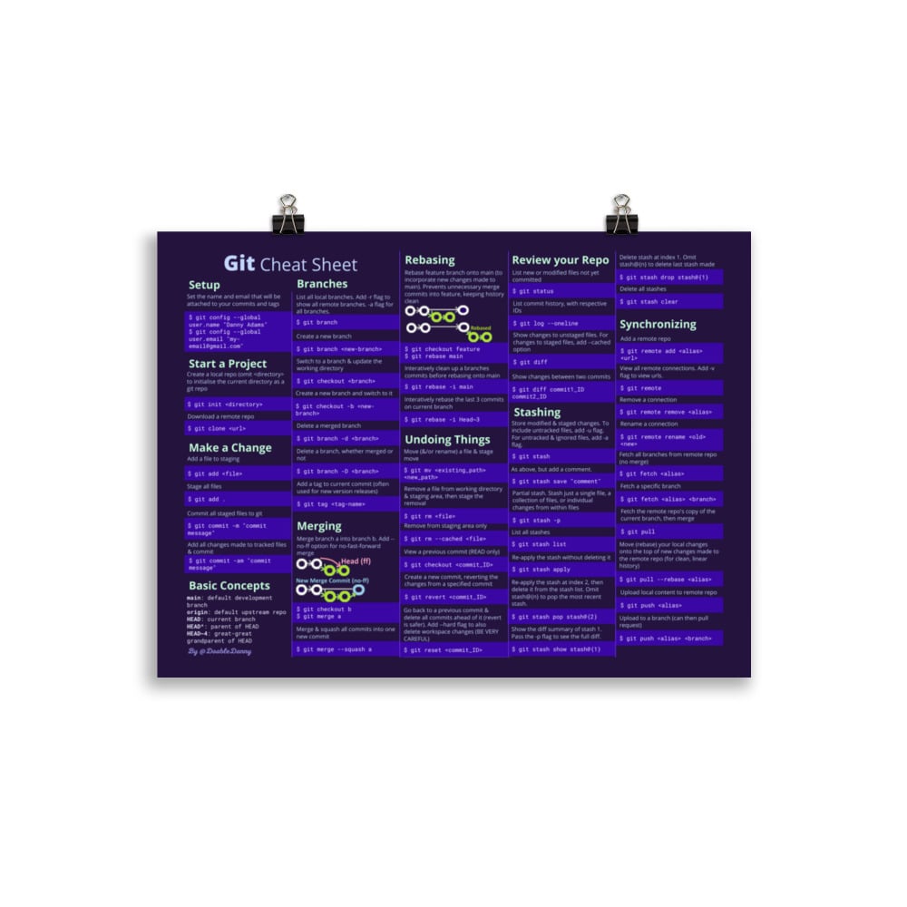 I was tired of looking up the same common Git commands - so I made this Git cheat sheet poster for my office wall. I thought others would find it useful too, so I made it available here on Gumroad.